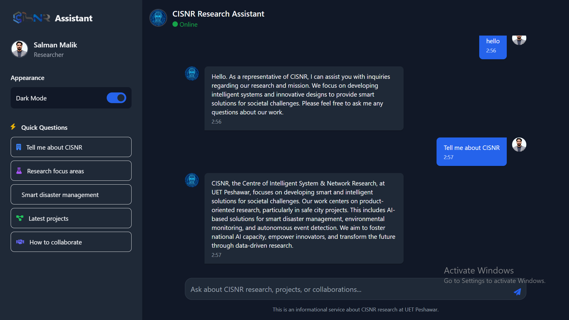 - CISNR Chatbot