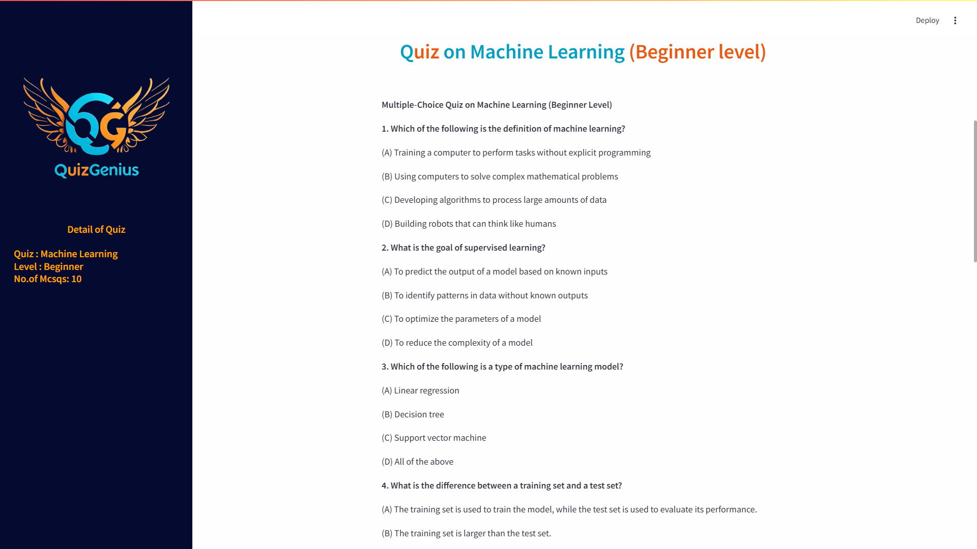 - Quiz Generation