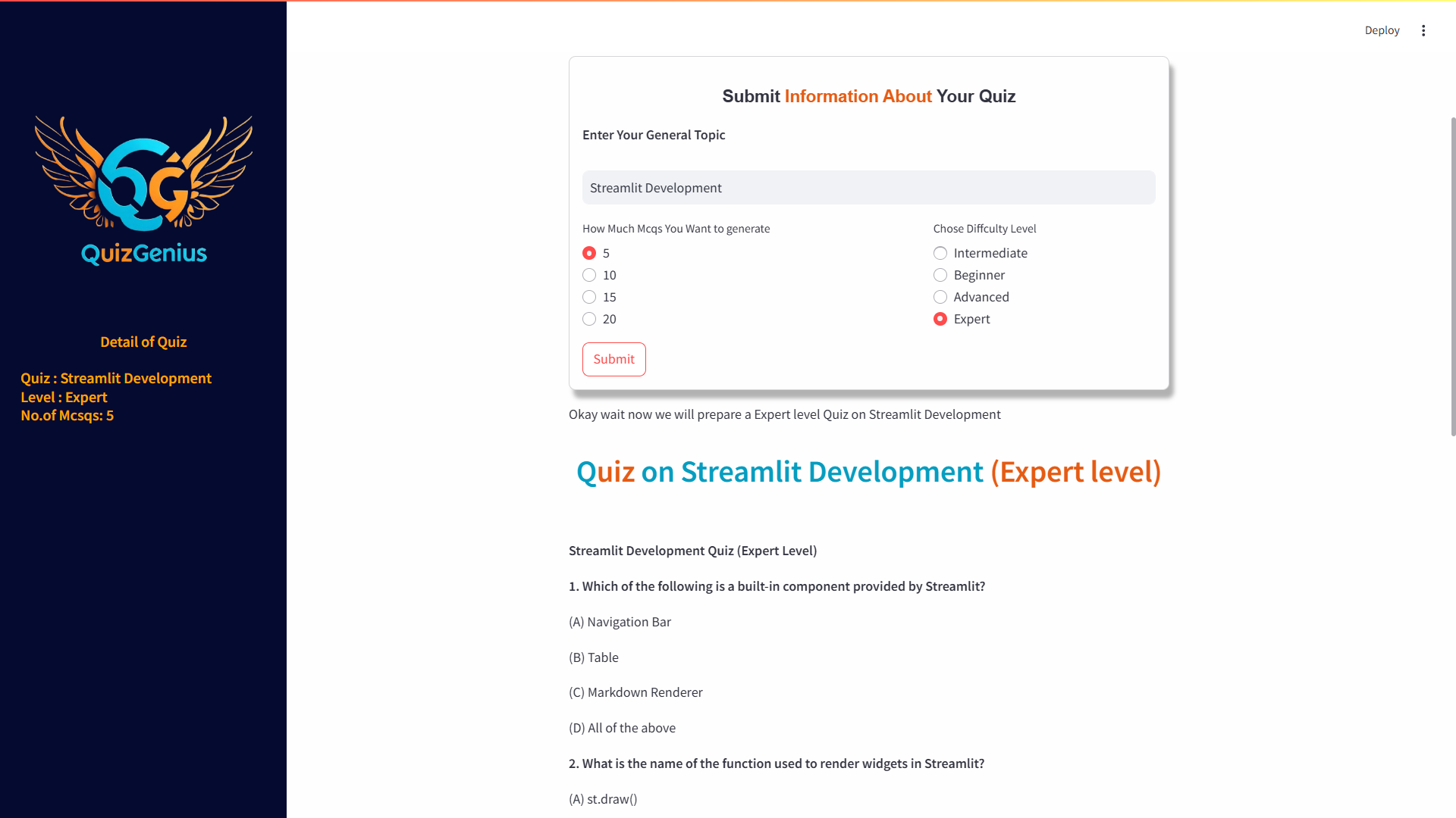 - AI Quiz Generator (GenAI)