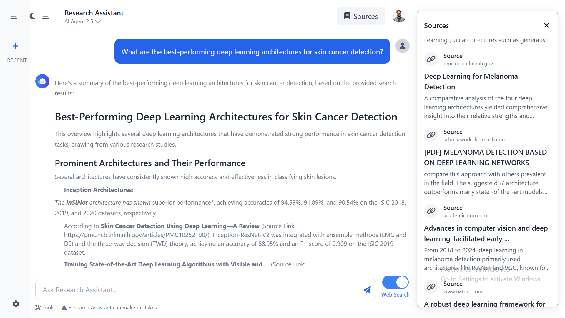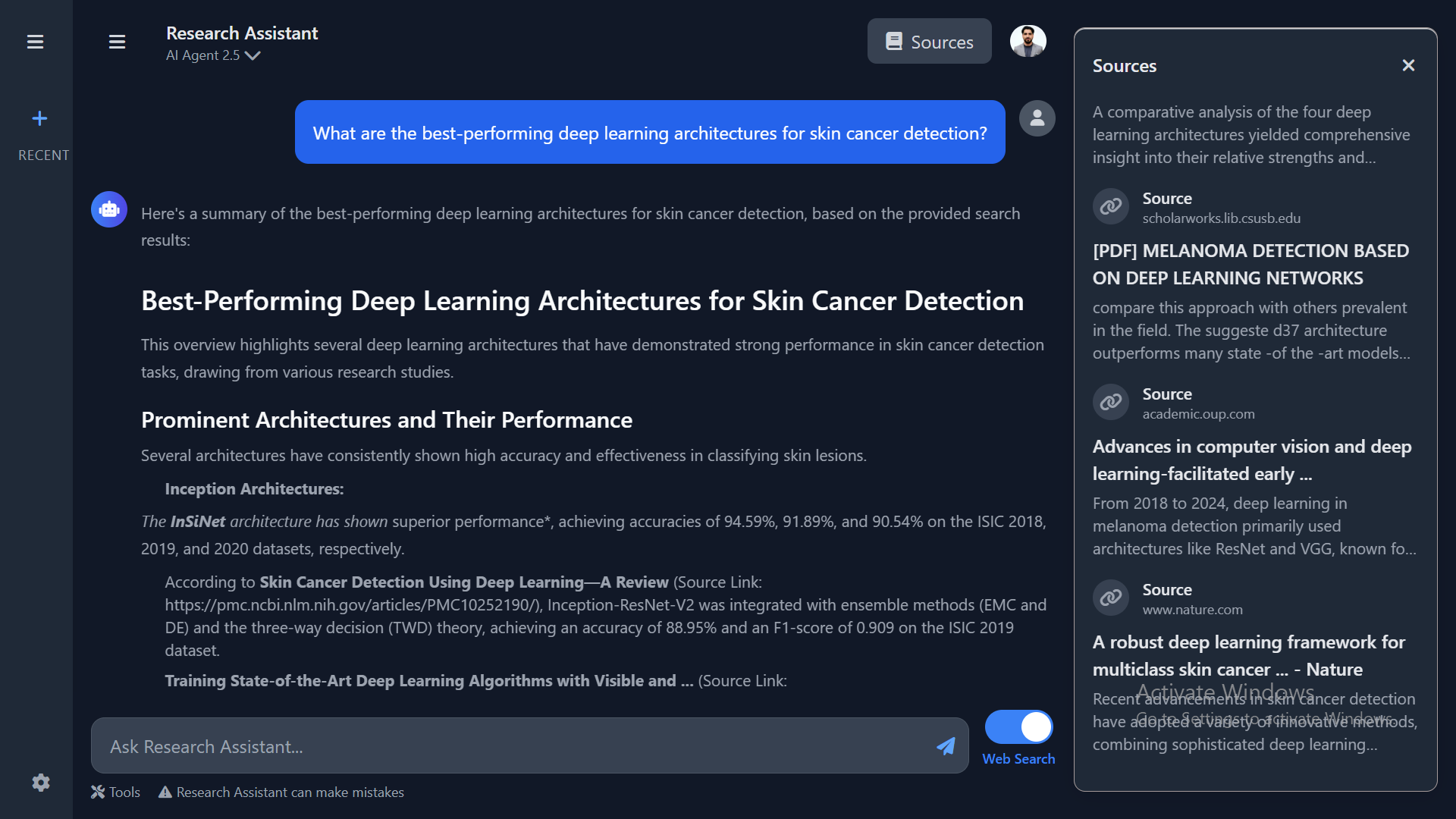 I have developed several innovative projects, including AI-powered research and web applications. My Quiz Generation Web App creates dynamic quizzes based on user input and provides instant feedback. The Code Debugging Web App detects errors in code, suggests corrections, and enhances code quality. I also built a Data Insight Predictor Web App that preprocesses datasets and applies predictive models for analysis. The Face Mask Detection Web App identifies whether individuals are wearing masks using image analysis techniques. Additionally, I created a Movies Recommendation Web App that recommends movies based on user preferences and viewing history. The House Price Predictor Web App utilizes advanced regression models to predict house prices, while the Dashboard Pro for EDA offers an interactive platform for Exploratory Data Analysis with a variety of visualization tools. Beyond web apps, I also developed AI-driven research projects such as a 🧠 Brain Tumor Detection App that classifies MRI scans as healthy or tumor-affected, a 🩸 Leukemia Diagnosis Research Paper (Nature Publication) where I proposed an EfficientNet-B7 + XAI framework achieving 96%+ accuracy, an 🤖 AI & R&D Research Assistant (GitHub) built with Flask + LangChain for research exploration and summarization, a 💬 CISNR Chatbot (GitHub) powered by Gemini + Pinecone RAG for organizational knowledge, a 📚 Generative AI Quiz Generator (GitHub) that automatically creates quizzes and exams, and a 🩺 Skin Cancer Detection App (GitHub) that classifies skin lesions as benign or malignant.